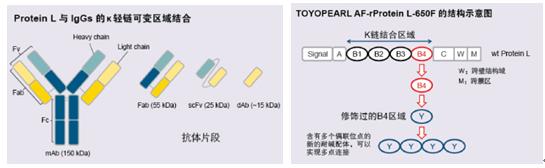 Toyopearl AF-rProtein L-650F 是鍵合有新一代重組Protein L官能團的親和層析填料,用于純化含有κ輕鏈的抗體、抗體片段。對于一些無法使用Protein A填料純化的抗體樣品(不含有Fc區域的抗體),可以通過Protein L來進行純化。