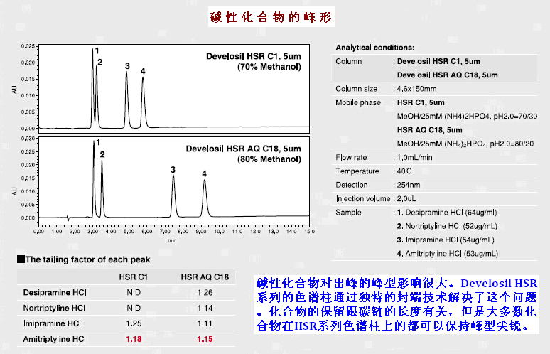 HILIC模式的柱子已經(jīng)有很多對(duì)極性化合物有良好保留的案例,但是,請(qǐng)嘗試一下Develosil的HSR系列色譜柱,你會(huì)發(fā)現(xiàn)這一系列柱子優(yōu)秀的的耐用性以及作為反相柱的便捷性。