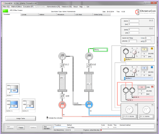 所有的Contichrom系統(tǒng)均具有完整的層析工藝運行能力,支持多種洗脫模式,ChromIQ軟件可以提供純化向?qū)Чδ埽灾С峙a(chǎn)工藝的設(shè)計和執(zhí)行。