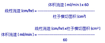 對(duì)體積不同的柱子來(lái)說(shuō),體積流速不能直接用作比較,一般都換算成線性流速,再做比較: