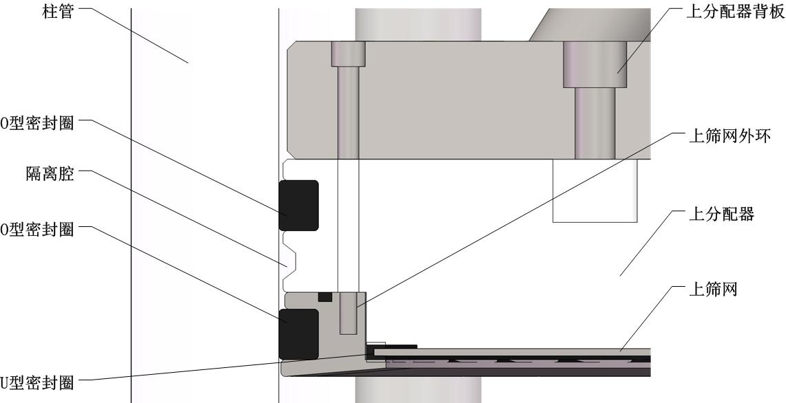 篩網(wǎng)采用U型密封圈進行密封,U型密封圈的內(nèi)表面可包裹篩網(wǎng)的上下表面及側(cè)面,有效防止漏膠,并且U型密封圈的體積很小,可有效防止篩網(wǎng)變形。
