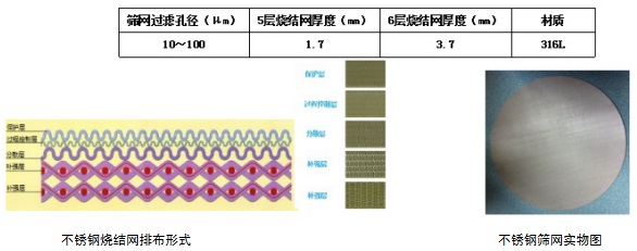 上下篩網(wǎng)為多層結(jié)構(gòu)的不銹鋼燒結(jié)網(wǎng)。 與聚乙烯篩網(wǎng)不同:聚乙烯篩網(wǎng)為疏水性質(zhì),需要在裝柱前充分潤濕,而不銹鋼篩網(wǎng)則不需要提前潤濕。不銹鋼燒結(jié)網(wǎng)由保護層、過程控制層、分散層及2~3層補強層燒結(jié)而成。