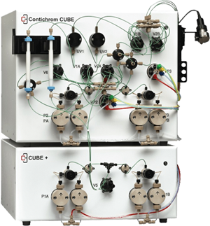 Contichrom CUBE & HPLC連續流層析系統,采用最優化的2柱位設計,可運行多種層析模式,如標準批處理過程、Capture SMB、MCSGP(多柱逆流溶劑梯度純化)、N-Rich等,實現了層析新技術與層析系統軟硬件設計的完美結合。