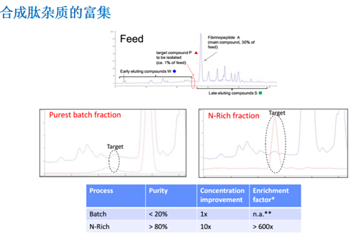 ? ??? ?N-Rich工藝是微量物質(zhì)的富集過(guò)程,比如將產(chǎn)品的相關(guān)雜質(zhì)選擇性地富集在一個(gè)循環(huán)的層析過(guò)程中,待富集至目標(biāo)量,再進(jìn)行洗脫回收。該方法特別適用于分離與產(chǎn)品有關(guān)的雜質(zhì),如異構(gòu)體和聚集體,并同時(shí)用于發(fā)現(xiàn)研究。